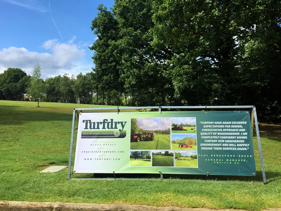 Following the successful installation of the Turfdry Drainage System using Hydraway Sportsdrain on a further 6 greens at Enfield Golf Club, Turfdry was delighted to sponsor one of the tees for club’s recent hosting of the Jamega Pro Golf Tour.