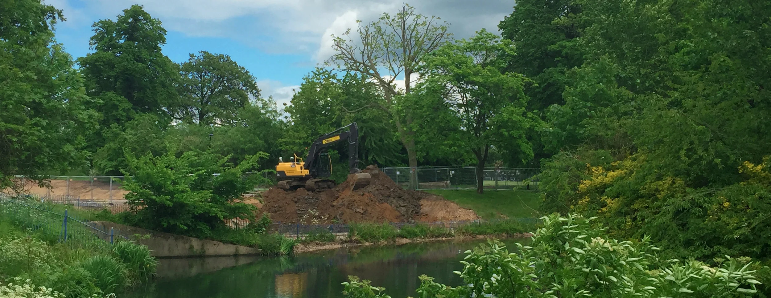 Following the tremendous success of Turfdry's work at Firs Farm Park in Enfield last year - which saw the restoration of a watercourse that had previously been diverted underground, and the construction of a flood barrier - Turfdry's work constructing wetlands and performing playing field improvements at the nearby Pymmes Park in Edmonton has gone well.