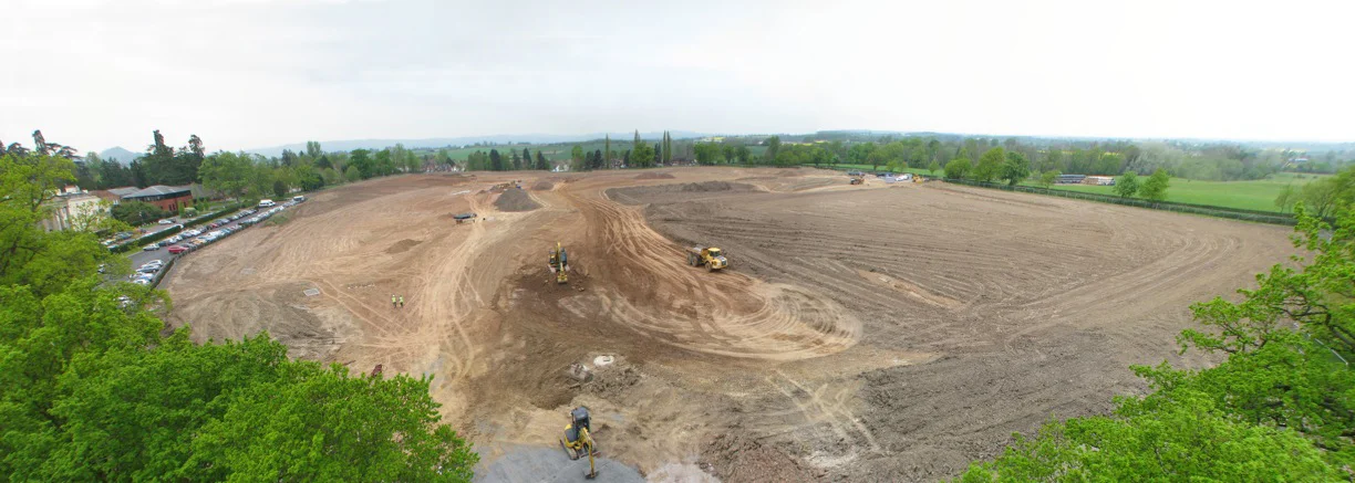 2016 saw Turfdry take on its largest single project to date: the transformation of fields adjacent to the prestigious Concord College in Shrewsbury into top class sports and leisure facilities, including pitches, an athletics track, and subtly landscaped surrounds to provide a visually attractive aesthetic that fits with the school's heritage as well as the natural beauty of the surrounding countryside.